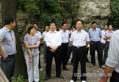 市委副書(shū)記馬志峰一行來(lái)到北莊村,用半天時(shí)間實(shí)地參觀了長(zhǎng)916米的引水隧洞工程,親身感受了崎嶇艱險(xiǎn)的引水山路,聽(tīng)取了村黨支部書(shū)記楊小周帶領(lǐng)北莊村民克服困難鑿山引水的感人事跡。