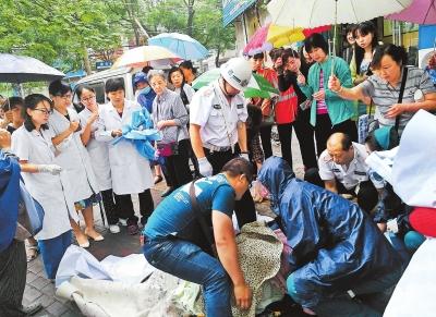 “快!找個(gè)衣服給孩子蓋住?!辈恢l喊了一聲。由于下雨天冷,光溜溜的小家伙凍得渾身發(fā)紫。話音剛落,沿街門店的商戶楊女士健步如飛,回到店里把自家孩子的毛毯拿過來,熱心市民有的還把衣服脫掉……毛巾、毛毯、衣服從人縫里送進(jìn)來,一層又一層地裹住嬰兒。當(dāng)120急救車趕到現(xiàn)場(chǎng),眾人把產(chǎn)婦抬上了救護(hù)車,所有人長(zhǎng)長(zhǎng)地出了口氣。