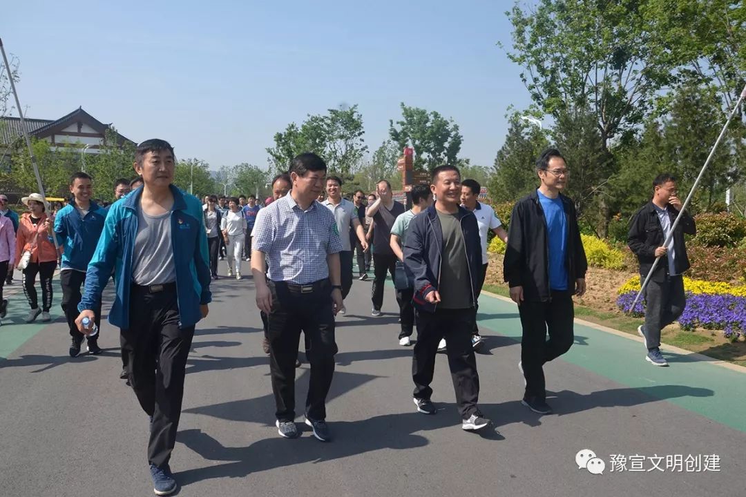 “最美人間四月天”,春暖花開,為倡導(dǎo)健康生活、快樂工作,鼓勵部機(jī)關(guān)干部職工積極參加戶外體育鍛煉,4月28日,省委宣傳部機(jī)關(guān)在鄭州園博園開展“新時代新征程 活力健康伴我行”健步走活動。常務(wù)副部長蘇長青同志、省文明辦專職副主任王飛同志、省委網(wǎng)信辦副主任蔡新民同志、副巡視員趙鋼同志與90多名干部職工共同參加了本次活動。鄭州市委宣傳部、鄭州航空港實(shí)驗(yàn)區(qū)管委會、鄭州園博園管理中心的干部職工也積極加入了本次健步走活動。